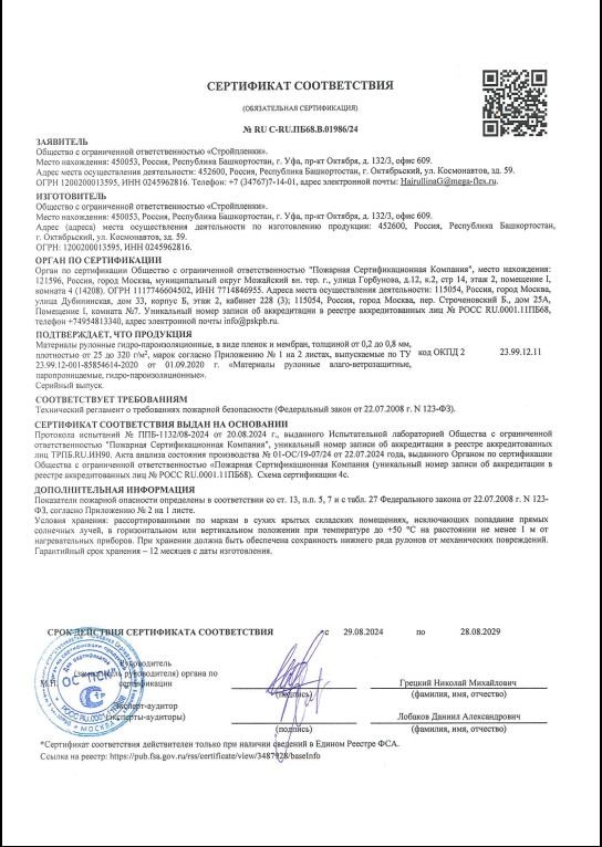 Пожарный сертификат RU.32311.0C01.H501.0174